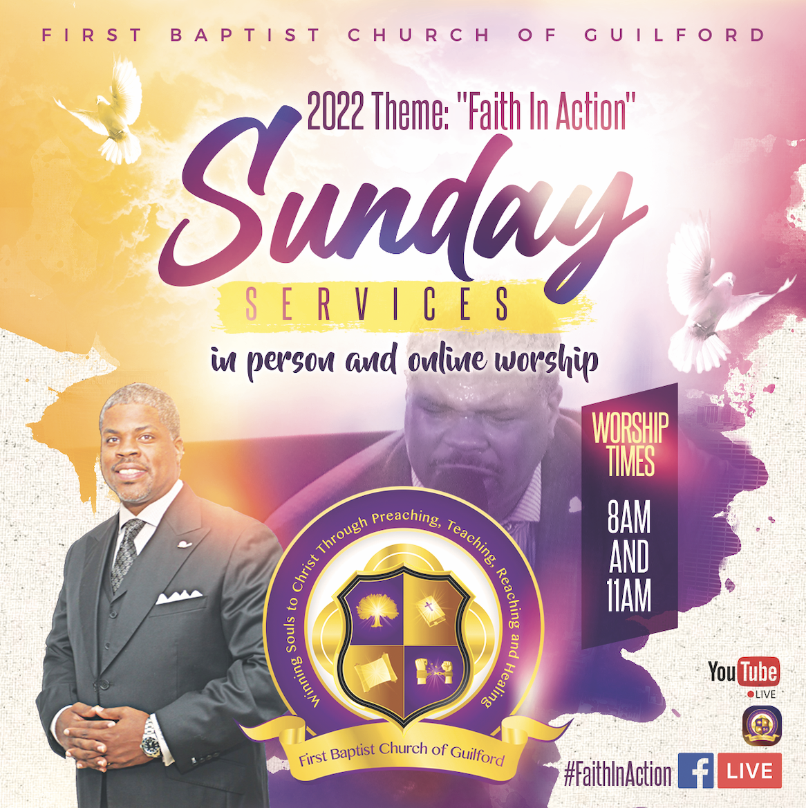 The First Baptist Church of Guilford “House of Faith” intends to create a dynamic worship experience to help disciples discover the tools required to be closer to the will of God by learning how to strengthen and balance one’s spiritual, mental, and physical life.
